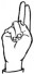 На ћирилици написано ТЕОДОР ГЛУШИЋ састоји се из 12 слова [?]. Исписано ћириличном једноручном азбуком за глувонеме: